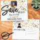 Envíe la invitación "Save The Date" para una fiesta de graduación con un confeti dorado en la parte superior y una foto personalizado del graduado. Esto permite guardar el diseño de fecha para cualquier ocasión especial. Personalice el texto frontal y posterior en los campos de plantilla, elimine texto o edite utilizando la herramienta de diseño para seleccionar un estilo de tipo de letra, tamaño y color que prefiera. Reemplace la foto del marcador de posición con la foto cuadrada. Foto de portaobjetos cortesía de pixabay.com.