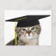 Tarjeta postal con foto de gatito atigrado con gorro de graduación. Gorra de graduación cortesía de krwgraphics en www.krwgraphics.com