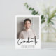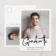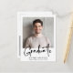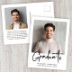 Postal de invitación de graduación moderna con tu foto y "Graduado" en un elegante guión en negrita. Añada el nombre del graduado, el año escolar y el año de clase en una tipografía simple. Al revés, agregue una foto adicional y un mensaje personalizado, o deje en blanco.
