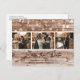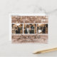 Tarjetas postales personalizadas de boda rústica de campo con una foto collage de 3 imágenes contra un fondo de madera de granero rústico desgastado adornado con luces de cuerda. Personalice fácilmente esta tarjeta postal de boda rústica con sus imágenes y detalles de la boda, incluyendo un sitio web de boda, si lo desea. Para solicitudes personalizadas, por favor envíenos un mensaje.
