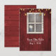 Tarjeta postal granero rojo ventana y luces rústicas guárdame la fecha.