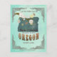 Green Aqua Save The Date postal con el mapa de Oregon con hermosas aves en ramas de árboles.