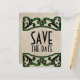 Elegante y moda Swirls Gótica Salven la Postcard Date con un fondo beige falso de textura vintage y bordes giratorios florecientes en verde oscuro. Este diseño de estilo antiguo es perfecto para anunciar tu boda gótica o vintage. Fácil de personalizar, simplemente agregue los detalles de su boda en los campos de texto proporcionados. Haga clic en "Personalizar" para encontrar más opciones de personalización.