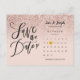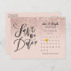 Este rosa de purpurina de oro sombrío salva la tarjeta de fecha con un calendario y un corazón de amor de oro de bonito resaltando su fecha especial. El reverso tiene detalles adicionales para guardar la fecha, incluido el sitio web del boda, con la dirección de devolución y el espacio para la dirección del destinatario. Diseñado por Thisisnotme© ***PARA MOVER EL CORAZÓN A SU FECHA ESPECIAL, CONSULTE LA DERECHA DE LA IMAGEN DEL PRODUCTO A DONDE DICE "PERSONALIZAR LA PLANTILLA". SI HACE CLIC EN EL TEXTO AZUL "DETALLES", VERÁ DÓNDE PERSONALIZAR EL TEXTO. EN LA PARTE INFERIOR, SE DICE "HAGA CLIC PARA HACER MÁS PERSONALIZAR". PULSE ESO Y PODRÁ MOVER EL CORAZÓN HASTA LA FECHA QUE DESEE.***