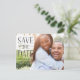 ¡Felicidades por tu gran noticia! Las tarjetas para guardar la fecha son el primer paso para informar a la gente sobre tus planes. Este diseño presenta un estilo moderno y elegante, adecuado para fotos a todo color. Reemplaza la foto del frente con la tuya propia y personalízala aún más con tus fechas y detalles haciendo clic en el botón "¡Personalízala!".