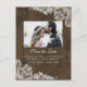 Crea tu propio Guardar la fecha con foto de encaje blanco floral de madera rústica con nuestras plantillas fáciles de usar. ¡Que tus invitados queden WowWed!