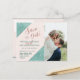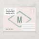 Elegante, chic y glamurosas esquinas de lentejuelas de purpurina falsas impresas azul teal y escritura en rosa dorado sobre un fondo rosa suave, Tarjetas Postales de guardar la fecha de la boda. Este diseño clásico y sofisticado es perfecto para la pareja que se casa trendy y elegante. Personalice con su propio mensaje en la parte delantera, así como una inicial de monograma personalizada en la parte posterior. Todo el diseño de impresión de fotos.