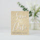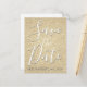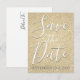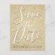 Guardar la fecha Tarjeta postal de cumpleaños con brillo y destellos falsos dorados que son perfectas para un aniversario, fiesta de cumpleaños, baby shower o boda.