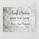 diseño de "Guardar la Fecha" para Cumpleaños Dulces 16 con Luces Brillantes de Plata, y nombres y fecha personalizados.