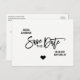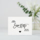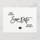Tarjetas postales de guardar la fecha elegantes y modernas para enviar a sus invitados. Letra de pincelada negra. Corazón en el medio. Plantillas personalizadas en línea para facilitar la edición. Agregue su texto en la parte delantera y trasera de la tarjeta. Póngase en contacto con el diseñador para solicitudes especiales.