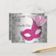 Hermosa postal de guardar la fecha de fiesta de mascarada rosa. Puedes eliminar la plata de la parte posterior si deseas blanco o agregar el color de fondo que elijas.