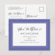 Anuncie la fecha de su próxima boda con nuestra elegante tarjeta postal de anuncio de boda "Save The Date" en azul pervinca y blanco. El diseño presenta caligrafía y letra script chic en gris carbón sobre un fondo blanco crujiente colocado en un marco de pervinca trendy acentuado por un delicado borde blanco. Personalice el diseño de la boda con sus nombres y apellidos y fecha en letra y caligrafía carbón. La parte trasera de la tarjeta coincide en blanco con letra script carbón y tiene detalles adicionales que incluyen su dirección de respuesta y sitio web u otro texto personalizado. Para obtener mejores resultados, reemplace el texto de la plantilla con sus detalles y siga las instrucciones en el área de la plantilla. Si necesita ayuda con este o alguno de nuestros diseños, envíe un correo electrónico a invitationsuites@gmail.com. Se aceptan solicitudes personalizadas con gusto.