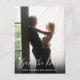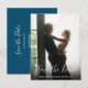 Esta tarjeta moderna de guardar la fecha con foto y guion presenta su foto especial superpuesta con un elegante guion de guardar la fecha encima de sus nombres, fecha y lugar en texto blanco. El reverso tiene detalles adicionales para guardar la fecha, incluyendo su sitio web de boda. Puede personalizar el fondo a su color favorito. Diseñado por Thisisnotme