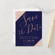 Tipografía de oro rosa en bloque de color con brillo de azul marino personalizable y rayas geométricas de falso oro rosa, chic guardar la fecha del matrimonio, perfecto para boda elegante y con estilo,