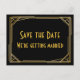 Postal De Anuncios Guardar la fecha Gatsby Boda de Art Deco Negro Oro