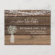 Luces de Cadena Rústicas de Granja y Aliento de Bebé en un Frasco Guardar la Fecha Invitaciones de Boda en fondo de Madera - incluye tipografía de guión hermosa y elegante con brillo moderno de Casa de Campo para la celebración especial del día de la Boda.