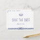 Tarjetas postales de guardar la fecha de boda náuticas con anclas azules marino y texto modificable - puede cambiar el texto, impreso en fondo blanco con patrón de ancla