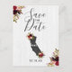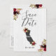 Guardar la fecha de la boda con tarjeta postal rústica chic del estado de California con madera de granero blanca y arreglos florales de acuarela de burgundy marsala y plumas boho con fuente de letra manuscrita de moda. ~ ¡Consulta mi tienda para ver toda la colección de bodas con este diseño!