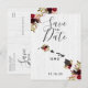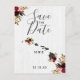 Guardar la fecha de la boda en el destino rústico del estado de Hawái con estilo campestre chic con madera de granero blanca y arreglos florales de acuarela de burgundy y marsala y plumas bohemias Tarjetas postales de guardar la fecha de la boda con fuente de letra manuscrita de moda ~ ¡Consulta mi tienda para ver toda la colección de bodas con este diseño!