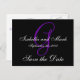 Postal De Anuncios Guarde la Fecha, Inicial, Monograma, Negro, Púrpur