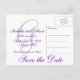 Púrpura y Negro, Simple, Elegante, Tarjeta Postal moderna de Guardar la Fecha con Inicial o Monograma. Anuncio de Boda. Fecha de Boda totalmente personalizable, Primeros Nombres de la Novia y el Novio, Inicial del Apellido o Monograma Tarjeta Postal de Guardar la Fecha en Negro, Blanco y Gris. Para otro color de fondo, contacte luxuryweddinginvitations@gmail.com. Elke Clarke©