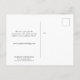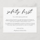 Cuando las circunstancias desafortunadamente significan que necesita posponer su boda, una tarjeta postal conveniente le permitirá informar a sus invitados. Este diseño tipográfico simplista en blanco y negro tiene Seguridad Primero escrito en una tipografía moderna centrada en la parte superior y el resto del texto en la parte delantera y trasera que puede personalizar fácilmente.