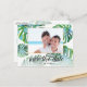 Estas tarjetas postales románticas y elegantes de "Save The Date" para boda presentan su propia foto sobre un fondo de elegantes hojas de la planta hawaiana Monstera. Fáciles de personalizar con la información de su boda, y el color de fondo también es personalizable. Estas tarjetas son perfectas para una boda hawaiana o en destino.
