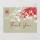 Musgo zen oriental gris, silueta de hojas de bambú rojas y blancas con un símbolo de doble felicidad en un rectángulo minimalista rojo/blanco en tarjeta de agradecimiento de boda. Un diseño de boda elegante y con estilo chino/oriental/asiático que es moderno, simple y clásico.