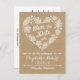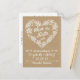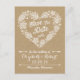 Elegante pero informal, esta tarjeta postal única para guardar la fecha es perfecta para cualquier amante de la naturaleza. Hojas de encaje estilizadas, piñas, bellotas, flechas y flores forman un corazón con un fondo de aspecto de papel kraft rústico. Personaliza con tu propio texto. Ilustración original de pj_design. Por favor, revisa mi tienda para ver más como esta.