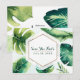 Tarjeta Postal Hojas Tropicales Verdes Elegantes Blancas Save The Date. Personaliza con cualquier texto.