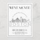 Una tarjeta postal de anuncio de mudanza de estilo deco moderno único para la hermosa ciudad de Boston, Massachusetts. Esta tarjeta presenta una ilustración estilizada del horizonte único de la ciudad con su nombre debajo. A esto le sigue la información de su dirección en un estilo de línea abierta coincidente. Todos los elementos individuales de la tarjeta están desbloqueados, así que siéntase libre de cambiar o agregar cualquier detalle necesario utilizando la función de personalización.