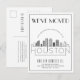Una tarjeta postal de anuncio de mudanza de estilo deco moderno único para la hermosa ciudad de Houston, Texas. Esta tarjeta presenta una ilustración estilizada de la línea del horizonte única de la ciudad con su nombre debajo. A esto le sigue la información de su dirección en un estilo de línea abierta coincidente. Todos los elementos individuales de la tarjeta están desbloqueados, así que siéntase libre de cambiar o agregar cualquier detalle necesario utilizando la función de personalización.