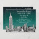 Conjunto de Invitación NYC Skyline Etched Look 01 - Negro y Blanco, Fondo de Cielo Estrellado Gradiente Verde - Tarjeta Postal de Aviso ========