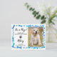 ¡Es una cachorro! Presenta a tu nuevo cachorro o rescate con esta tarjeta de anuncio de nuevo cachorro con huellas de patas y huesos de acuarela azul para perros y cachorros.