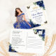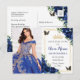Personaliza esta bonita tarjeta postal de cumpleaños Quinceañera / Sweet 16 con flores de color azul real fácilmente y rápidamente. Simplemente haz clic en el botón personalizar para editar los textos, cambiar las fuentes y los colores de las fuentes. Cuenta con vibrantes flores de color azul real, mariposas y acentos dorados. Las mariposas y la corona son móviles, redimensionables, multiplicables y removibles. ¡Personalízala para que se adapte a tu ocasión! Artículos coincidentes disponibles en la tienda. (c) Somerset Fine Paperie por The Happy Cat Studio.