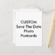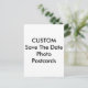 PERSONALIZADO IMPRESO PERSONALIZADO GUARDAR LA FECHA POSTCARD Blank Template. CREAR SU PROPIA BODA GUARDAR LAS POSTCARDS DE FECHA. HAGA SUS PROPIAS TARJETAS DE FOTO. DISEÑAR SUS PROPIAS TARJETAS POSTCARDS BODAS. CARGA SU PROPIO DISEÑO, FOTO, PATRÓN, LOGO. AÑADIR TEXTO MÚLTIPLE DE FUENTE. PERSONALIZAR PLENAMENTE. Personalizado Guardar las postales de invitación de fecha, 5.6" x 4.25" (retrato, vertical), impreso en tarjetas ultrapesadas de 120 libras con acabado brillante.