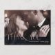 Opte por un aspecto llamativo, brillante y de cristal utilizando las piezas de esta suite boda como se muestra, con joyas que caen en cascada de hojas de palma incrustadas en diamantes o eliminando las joyas para un aspecto más conservador. Este conjunto presenta hojas en oro rosa brillante contra un fondo azul marino oscuro, texturado. La postal del boda 'Gracias' que se muestra aquí tiene un borde superior de hojas brillantes al revés y un elegante tipo de letra en Serif 'Gracias' sobre su propia foto boda favorita en el frente. Introduzca fácilmente su mensaje personal de agradecimiento utilizando la plantilla proporcionada. Vea el vínculo de colección en esta página para ver todos los elementos coincidentes de este hermoso conjunto o busque ID830 para ver opciones de color adicionales para este diseño.