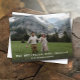 Anuncie su reciente boda de montaña con este diseño rústico. Un degradado oscuro y un titular rústico al estilo de máquina de escribir superpone tu foto favorita del día de la boda. La parte trasera de la postal puede ser usada para invitar a amigos y familiares a una próxima recepción/celebración local.
