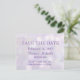 Un bokeh de lavanda con aspecto de bonito guarda la postal de la fecha. Diseño de Amelia Carrie para zazzle.com/GlitterInvitations ¡¡¡Tengan un MARAVILLOSO evento!!! Nota: Esta es una imagen gráfica de la obra de arte y no contiene ningún purpurina desordenado.
