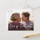 ¿Necesitas posponer la fecha de tu boda? Nuestras modernas tarjetas postales de aplazamiento de boda son perfectas para notificar a tus invitados la nueva fecha. La tarjeta de cambio de fecha presenta "El amor es paciente" en una superposición de escritura a mano con tu foto de compromiso horizontal. Personaliza la tarjeta agregando tus nombres, dirección de devolución, detalles de la boda, sitio web de la boda, etc.