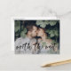 ¿Necesita cambiar la fecha de su boda? Nuestras elegantes tarjetas postales de postergación de boda para cambiar la fecha son perfectas para ayudarlo a notificar a sus invitados la nueva fecha de su boda. La tarjeta postal de cambio de fecha de moda presenta "vale la pena esperar" en un superpuesto de letra de pincel manuscrita en negro con su foto de compromiso horizontal. Personalice la tarjeta postal agregando sus nombres, dirección de devolución, detalles de la boda, sitio web de la boda, etc.