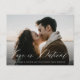 ¿Necesitas cambiar la fecha de tu boda? Nuestras elegantes tarjetas postales de aplazamiento de boda son perfectas para notificar a los invitados de tu nueva fecha de boda. La tarjeta postal de cambio de fecha presenta "El amor es paciente" en una superposición de escritura de caligrafía blanca con tu foto de compromiso horizontal. Personaliza la tarjeta postal agregando tus nombres, dirección de devolución, detalles de la boda, sitio web de la boda, etc.