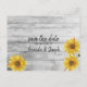 Elegante y campestre, esta rústica tarjeta postal Save the Date de Boda Blanca y Sunflowers es la manera perfecta de informar a todos sus amigos y familia sobre su próxima boda rural en primavera o verano. Toda la tipografía es personalizable para adaptarse a sus necesidades de celebración del día de la boda.