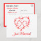 This whimsical lovebirds just married announcement is such a sweet way to share your happy news. The two little red birds forming a love heart give it that warm, romantic feeling that fits your wedding perfectly. The red and white colors keep everything soft and boho, with your details printed in pretty red script and clean black text. It’s perfect for a nature lover, an outdoor summer celebration, or a romantic spring or garden wedding vibe. If you love cute birds and simple, meaningful details, this design will feel completely you — a heartfelt little keepsake to announce your marriage with joy.