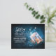 tarjeta postal save the date única azul con hermoso mason jar caprichoso con luces brillantes - luciérnagas. Save the date moderno y vintage perfecto para temas de boda rústicos de campo.