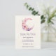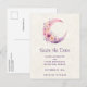 Guarde la postal de fecha con un ilustracion encantador con una suave luna de luna de miel rosa y violeta. flores silvestres rosadas y amarillas adornan este cuerpo celestial.
