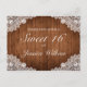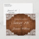 Tarjeta de invitación de cumpleaños Sweet 16 estilo rústico con fondo de tablones de madera y decoración de encaje blanco. Hay más artículos disponibles en este estilo en nuestra tienda. Puede editar el diseño más a fondo, cambiar colores, fuentes y agregar texto adicional haciendo clic en el enlace "personalizar más".