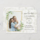 El marco geométrico dorado que rodea la foto está adornado con estores de vegetación, con un fondo de mármol que le confiere un elegante diseño minimalista moderno. Personalice el diseño agregando sus propios detalles de fotos y bodas.