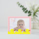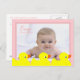 La foto del bebé nestled en medio de tres patos de goma lindos. Da una manera adorable de dejar todos sus amigos y familia saber que usted nueva adición ha llegado.