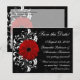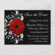Guarde la fecha con esta elegante postal de alto contraste. Todo el conjunto de invitaciones de boda cuenta con Gerbera Daisy roja verdadera sobre fondo negro con acento de desplazamiento blanco. Perfecto para invierno, otoño, primavera, verano, cualquier estación. Fácil de personalizar en línea. El conjunto completo incluye invitaciones, tarjetas de respuesta rsvp, tarjetas de agradecimiento, sellos de sobre, photocards, tarjetas de lugar de mesa, carpetas y más.